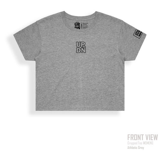 In both mens and womens fit. Womens fit coming up a little shorter in the arms and body and a tiny bit of a curvy fit. Also now available in CROP TEE!