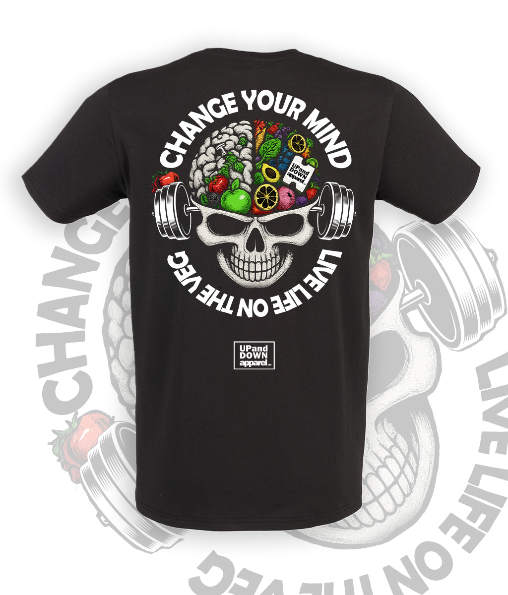 Logo to the front with the amazing Change your Mind, Live life on the Veg graphic on the back... Are you vegetarian and looking for a T shirt that shouts.. 'I AM PROUD OF IT'.